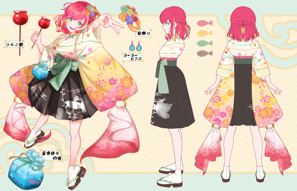 きんぎょの姿と人間姿、両方のモデリングをお願いさせていただきました。ぬるぬる動くぞ~かわいいぞ!